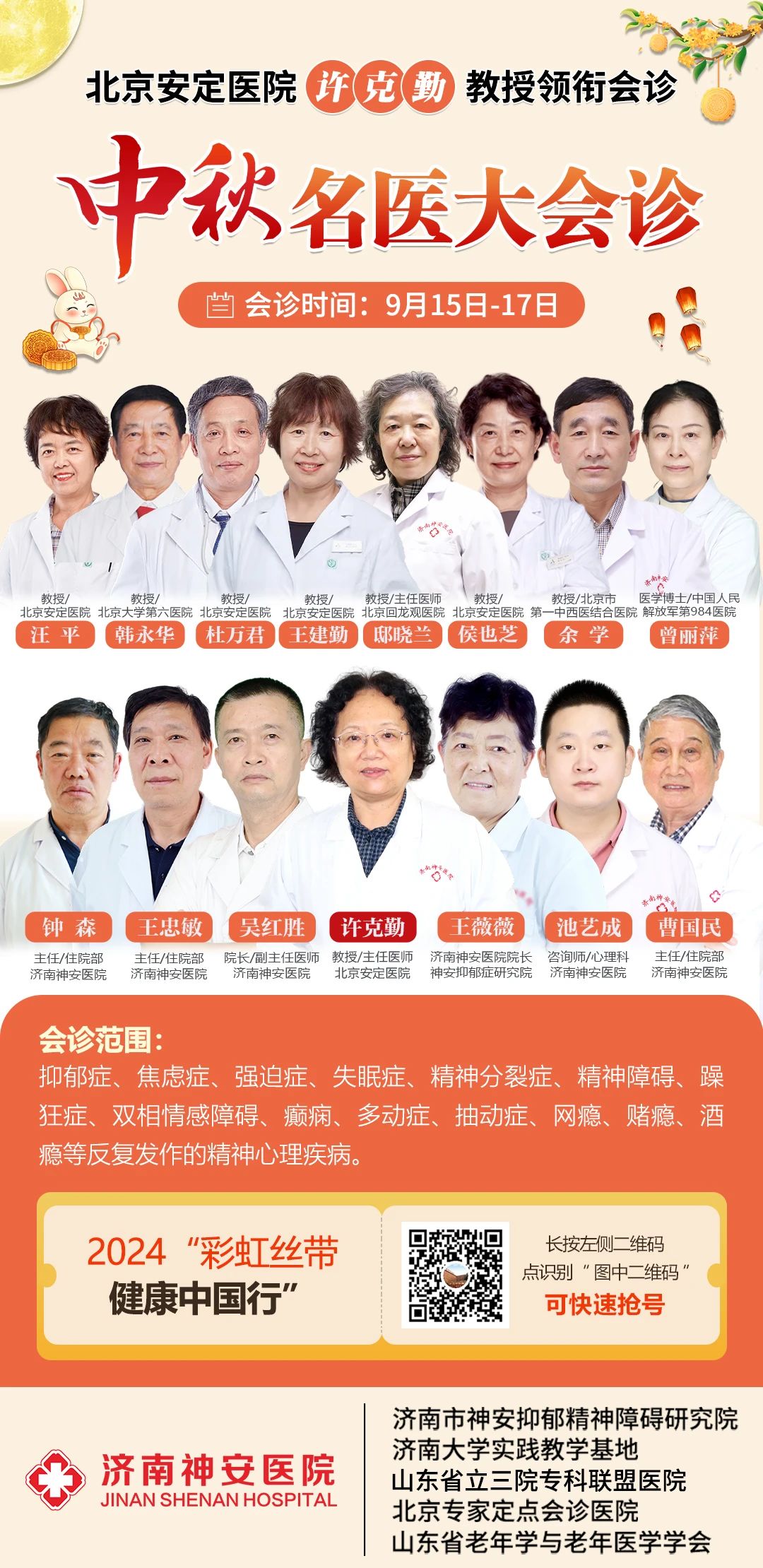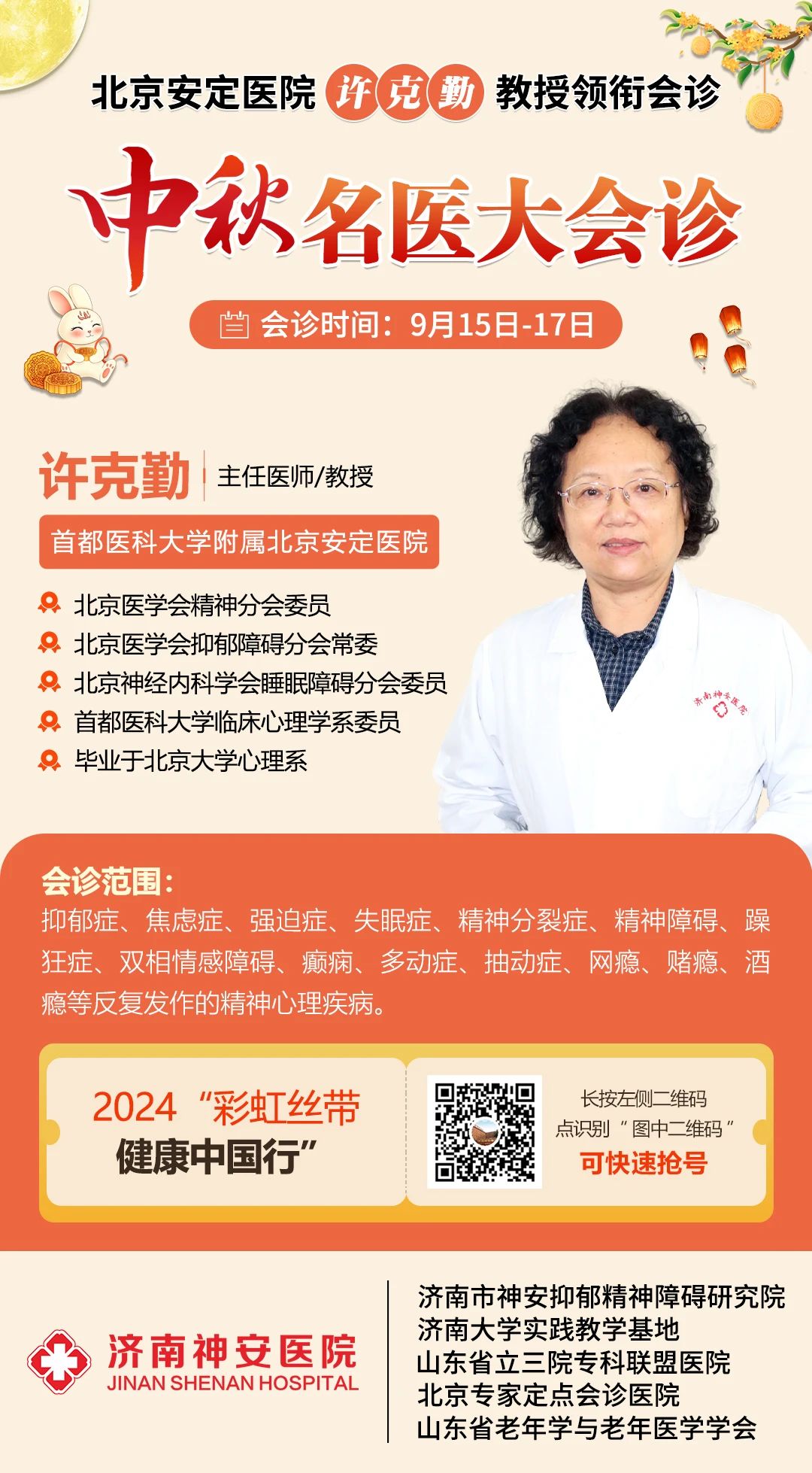 【中秋会诊预告】特邀北京安定医院许克勤教授来院会诊,9月15-17日,重点解决精神心理顽疾